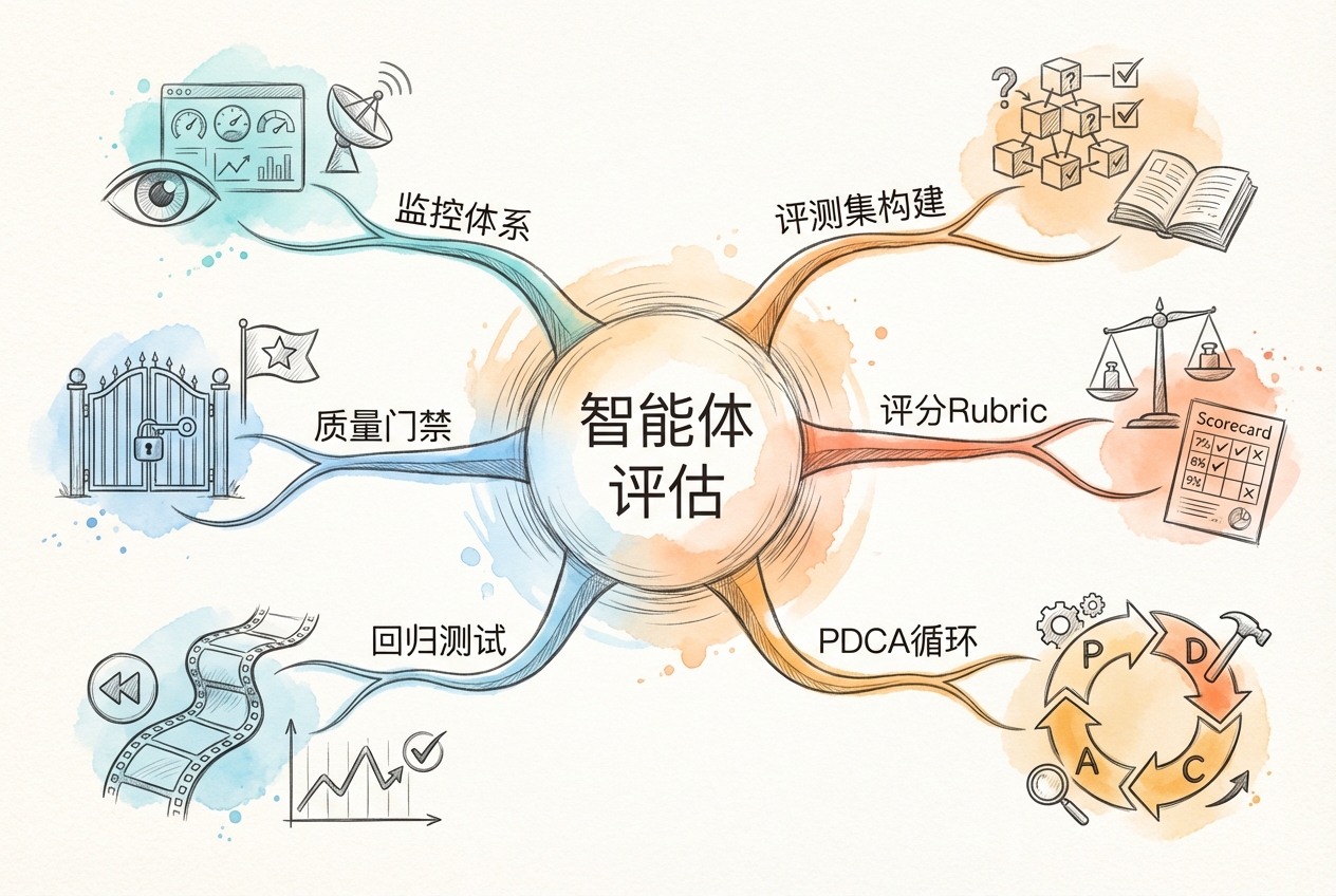 本章介绍智能体评估(Agent Evals)的完整框架,从评测集构建到评分标准设计,从优化迭代到监控回归,帮助你建立可重复、可量化的质量保障体系。