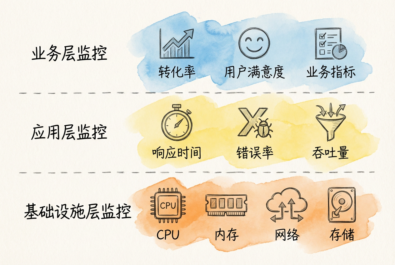 | 适用阶段 | 开发、迭代、上线前 | 灰度、生产、长期监控 |