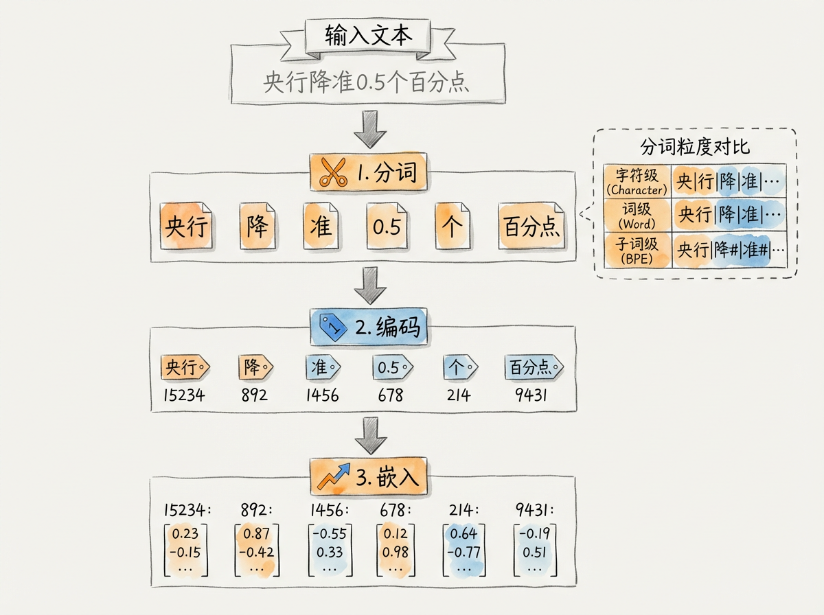 | Tokenizer | 将文本切分成 Token | BPE、WordPiece 算法 |
